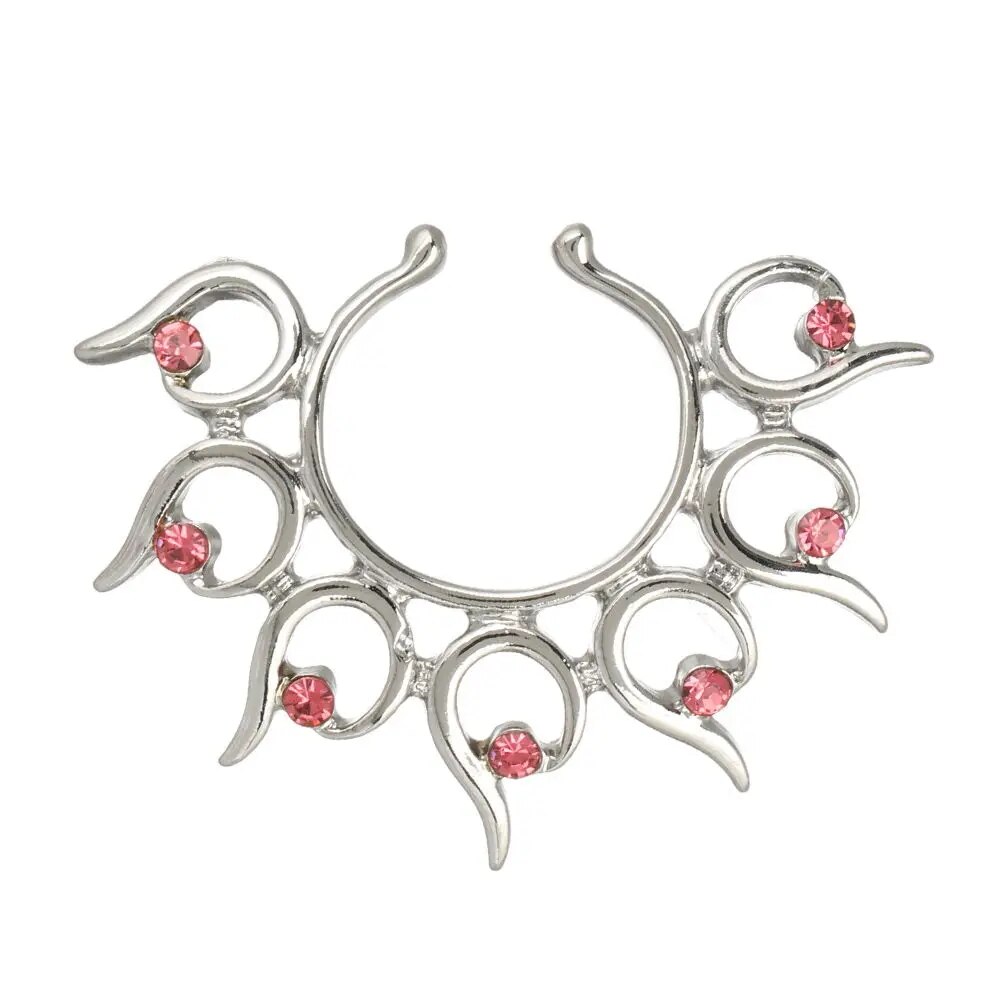 Mettez en lumière votre charme audacieux avec notre faux piercing téton. Arborant un design flamboyant, rehaussé de cristaux roses étincelants, c'est la pièce maîtresse pour quiconque souhaite affirmer une élégance incomparable avec une touche de mystère.